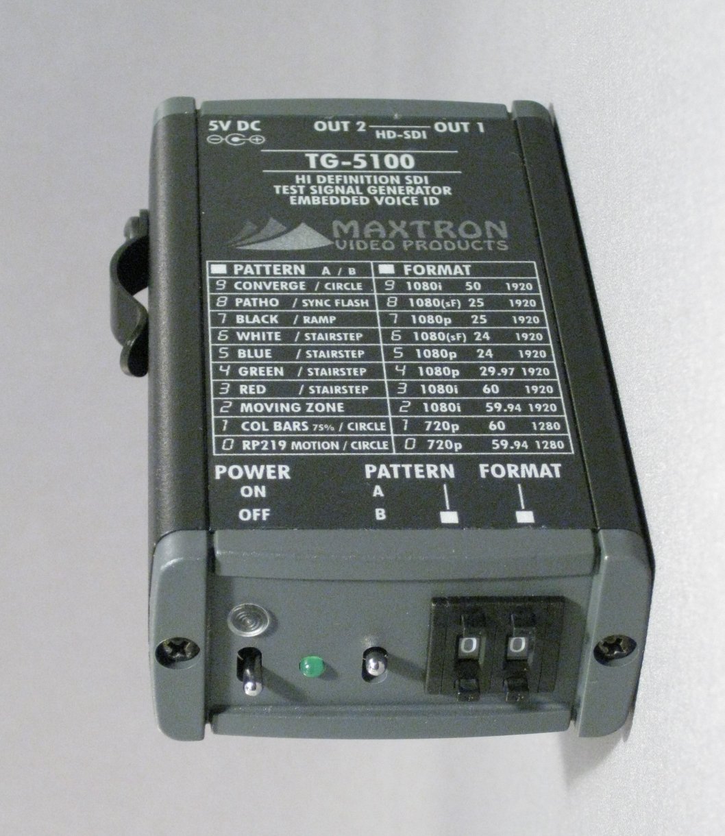 Rugged and durable, the TG-5100 won’t roll off the bench or hide under a monitor. It is housed in a mechanically strong, extruded aluminum box, with laser cut openings. Pattern and format selects use push-wheels that are not prone to being accidentally changed and always indicate the exact status of the generator.